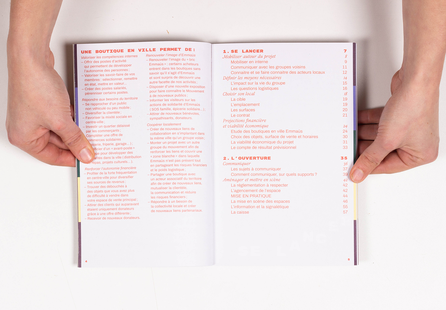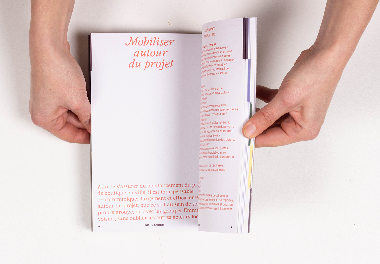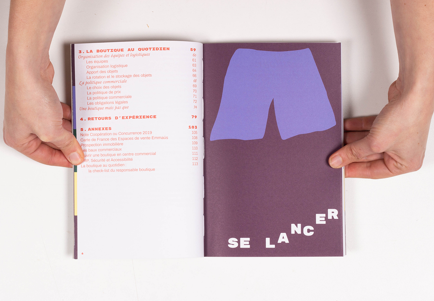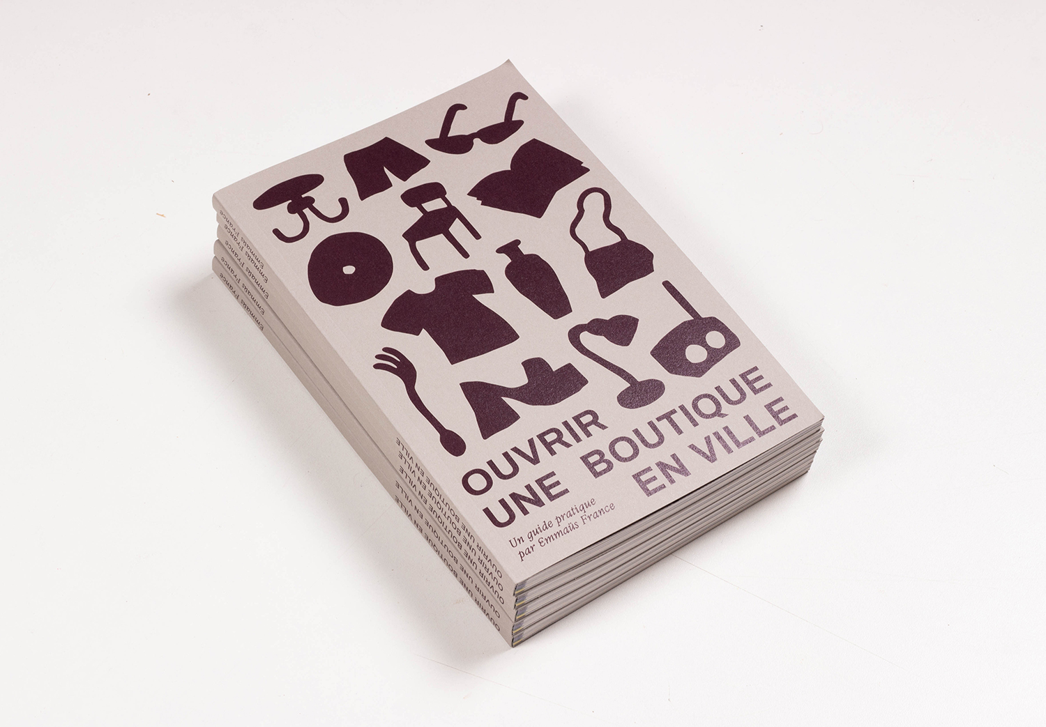 Ouvrir une boutique en ville Conception graphique du guide accompagnant l'ouverture d'une boutique en ville pour Emmaüs France.2025