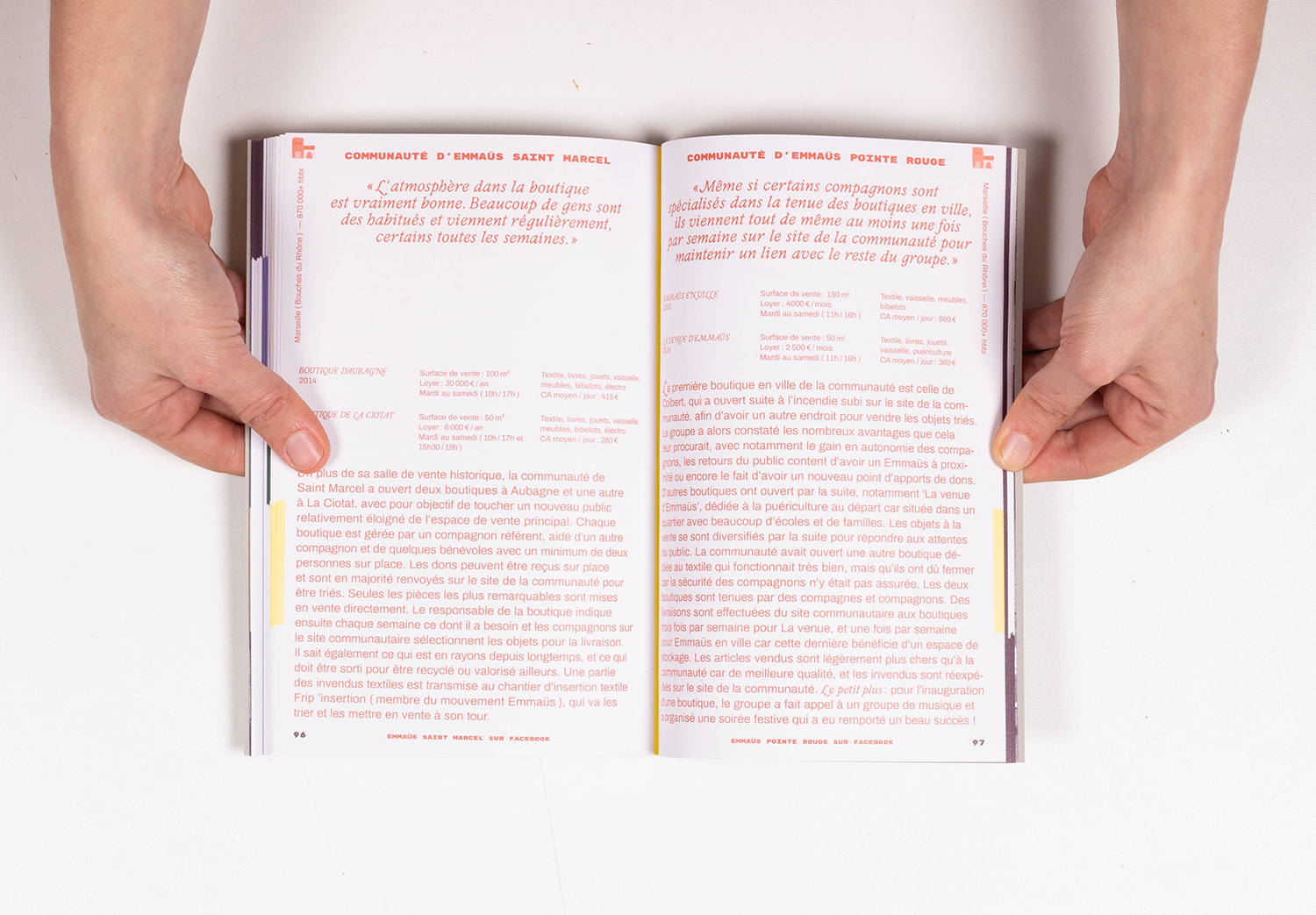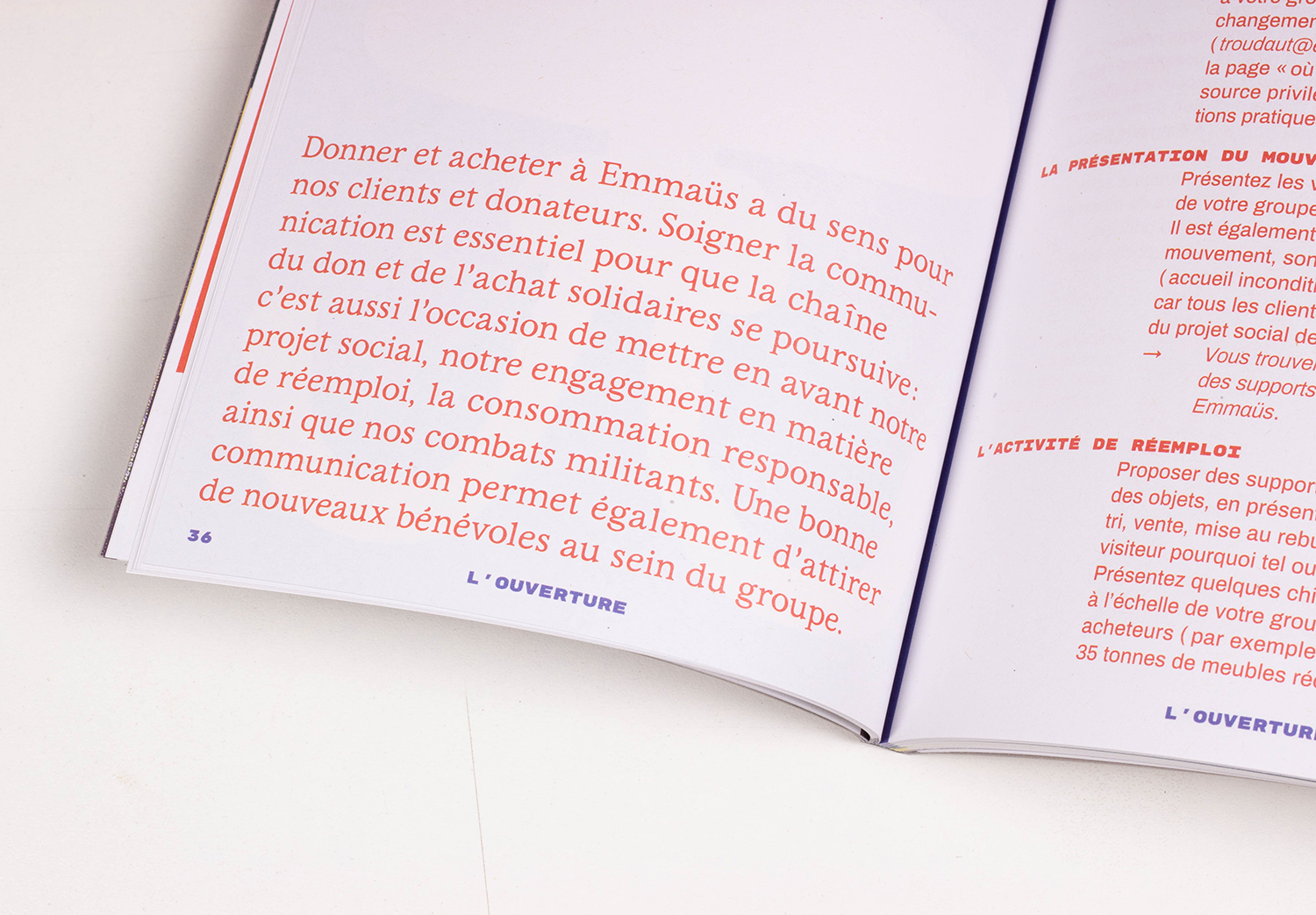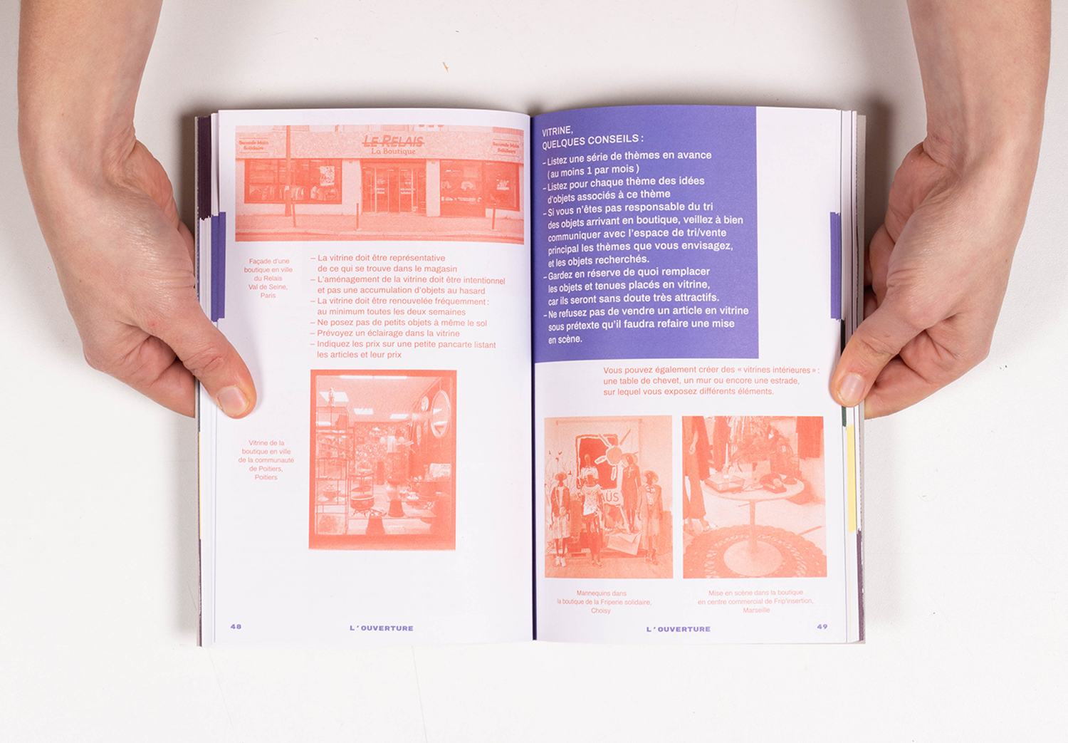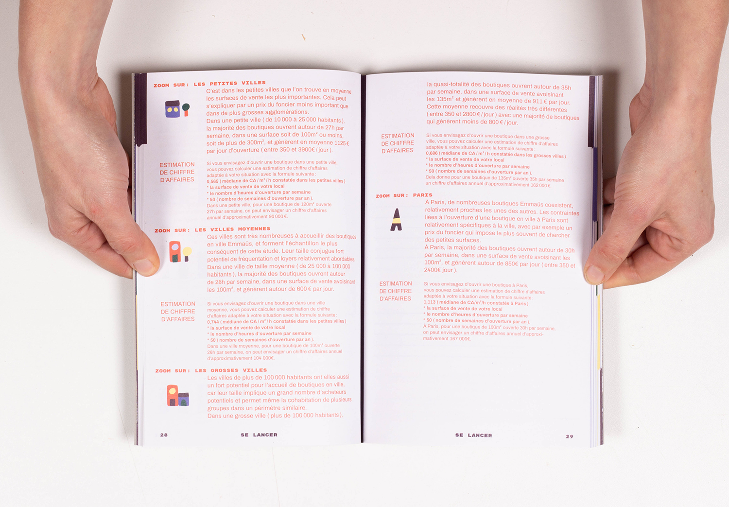 Ouvrir une boutique en ville Conception graphique du guide accompagnant l'ouverture d'une boutique en ville pour Emmaüs France.2025